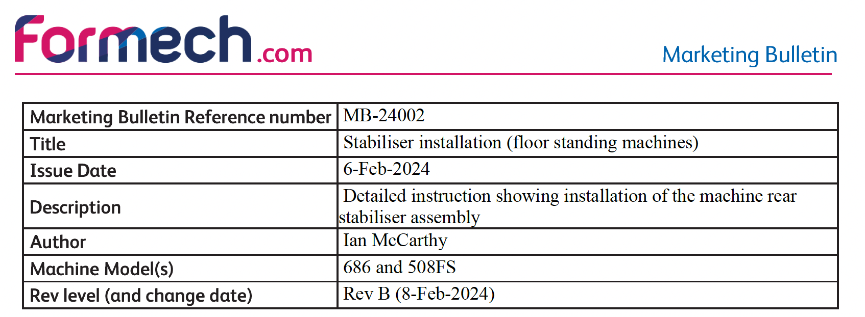 Download a PDF of this Stabiliser Installation Marketing Bulletin.